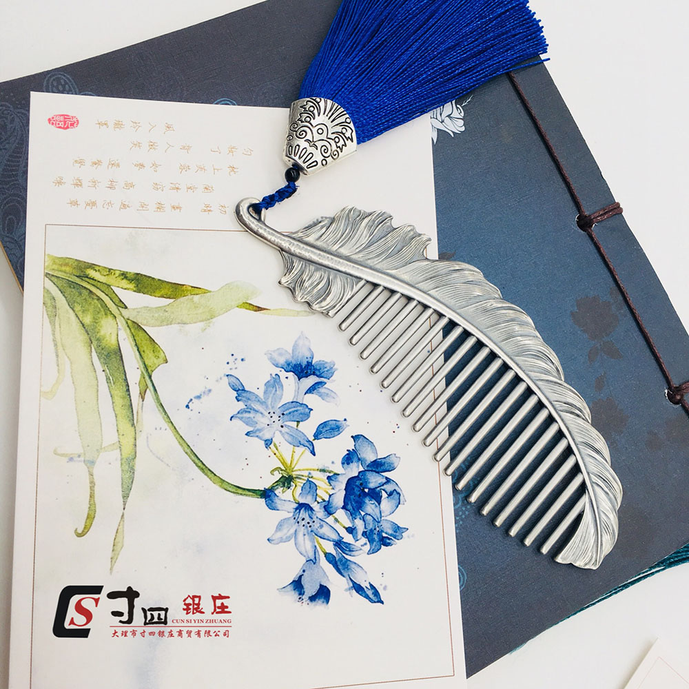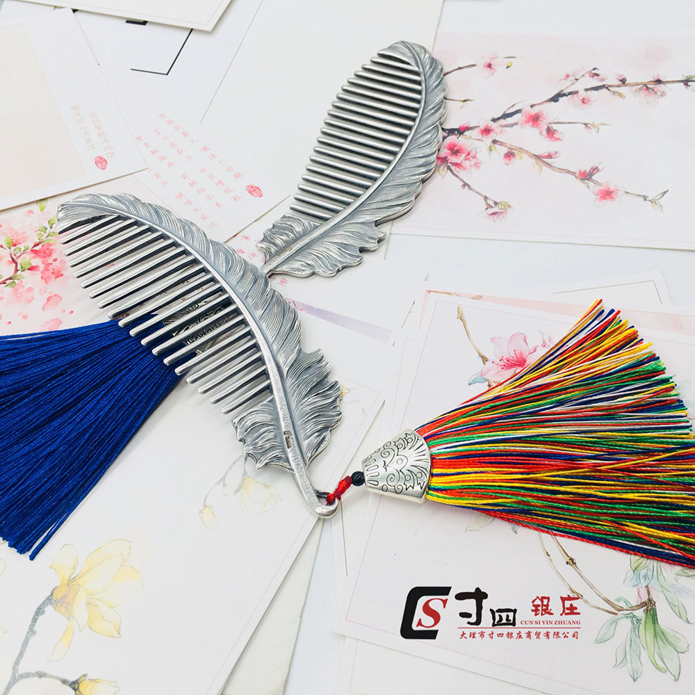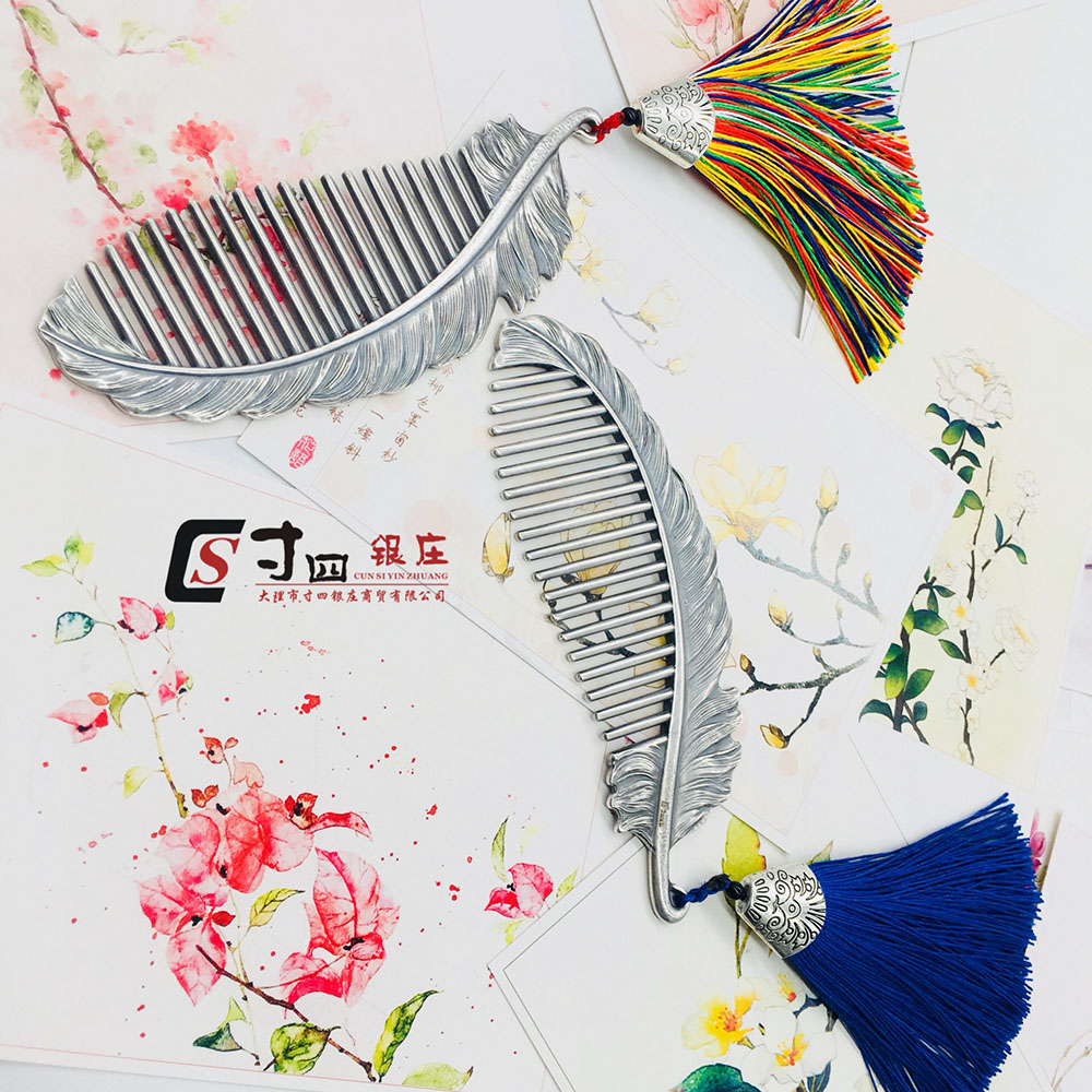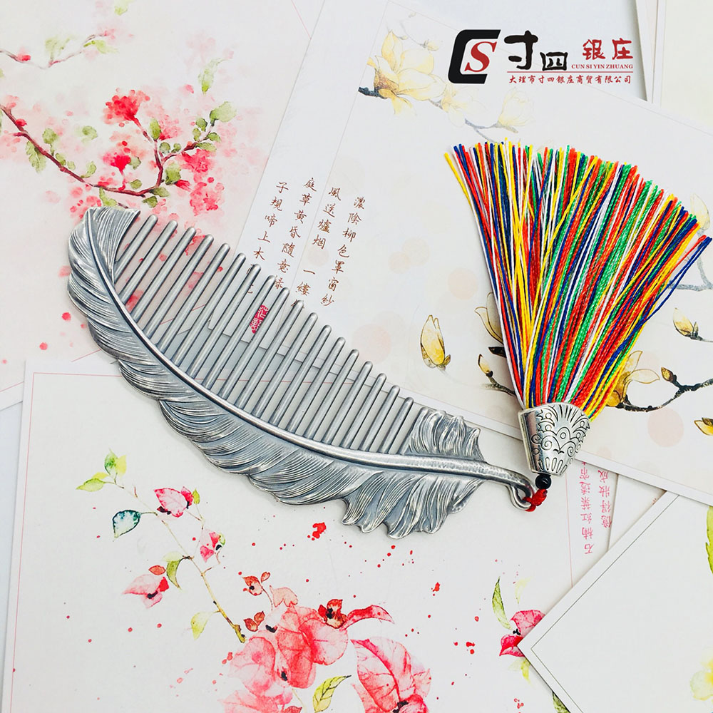 寸四銀莊羽毛銀梳,羽毛肌理非常寫實,搭配精美流蘇,非常精致,