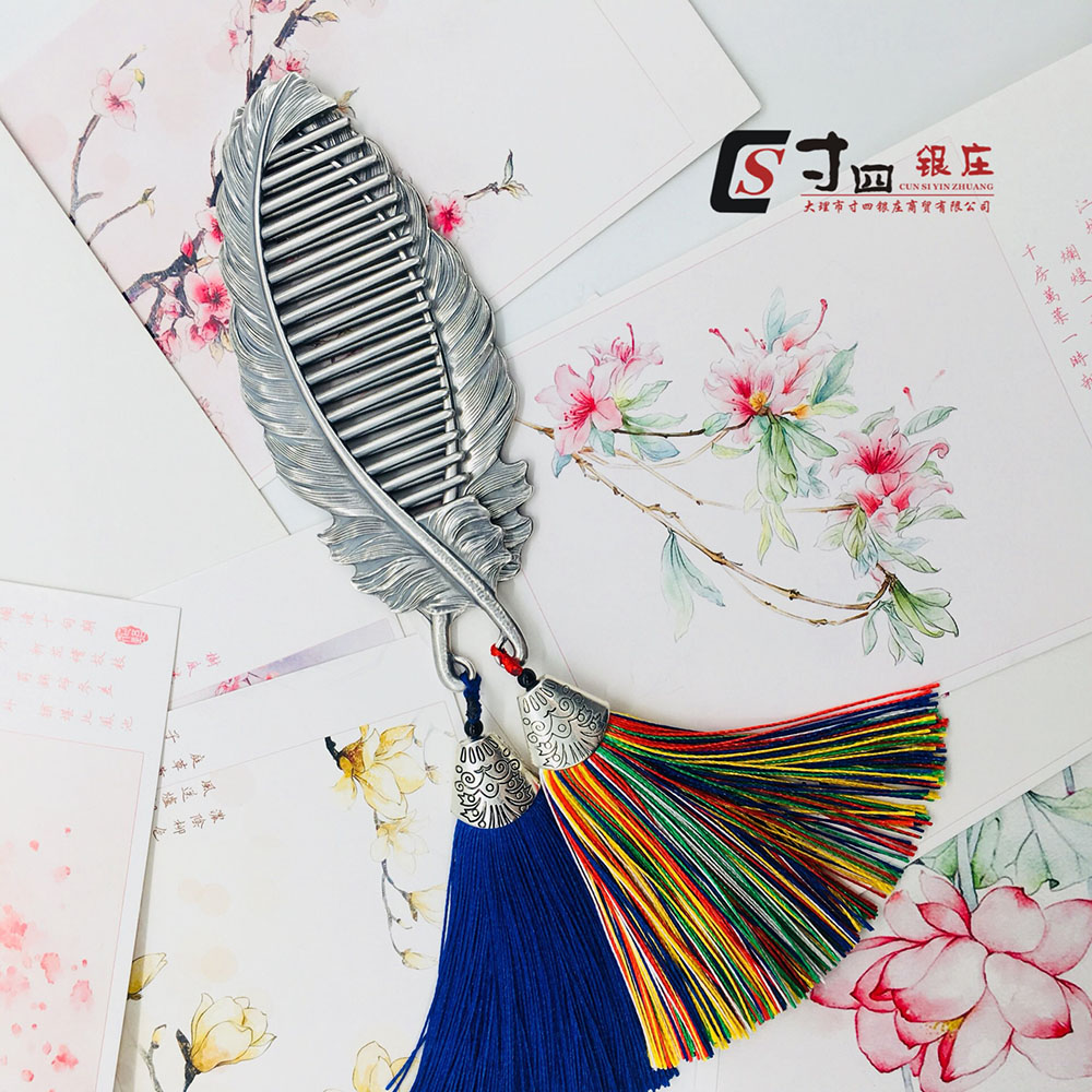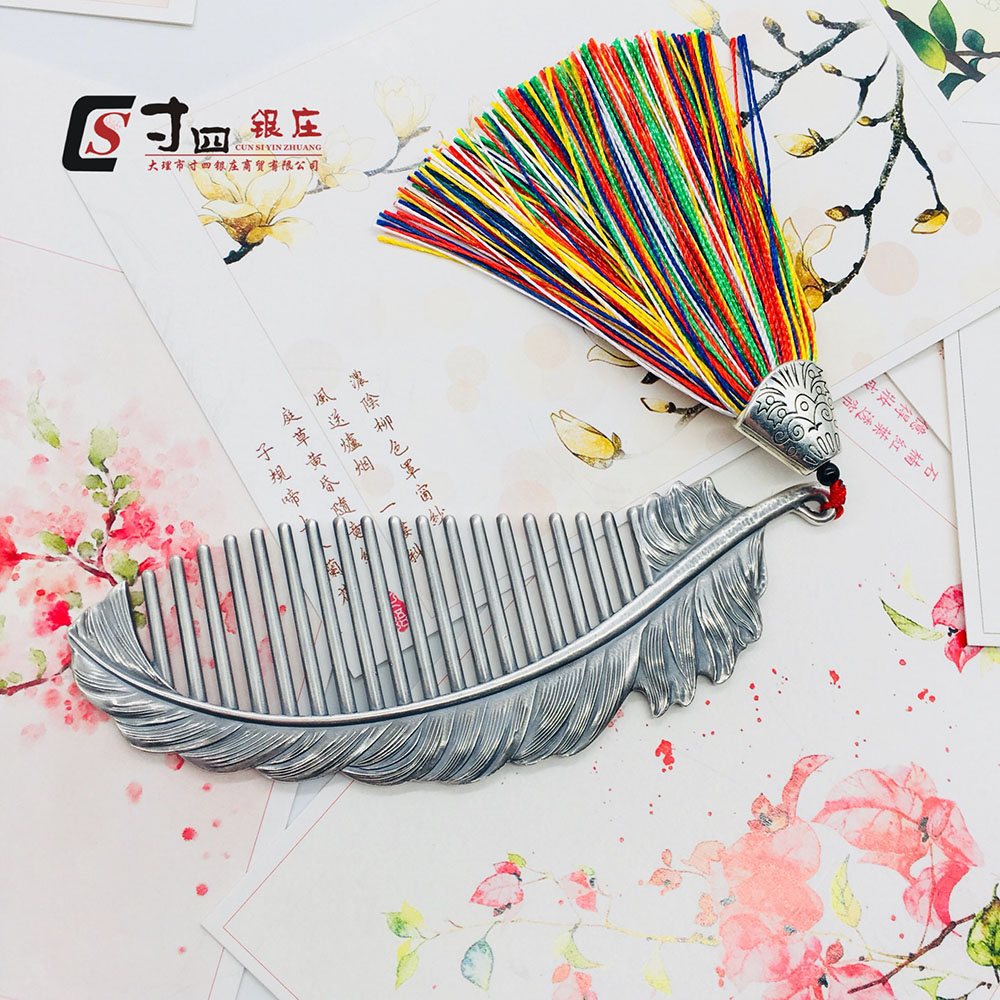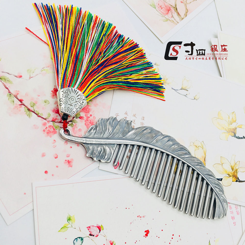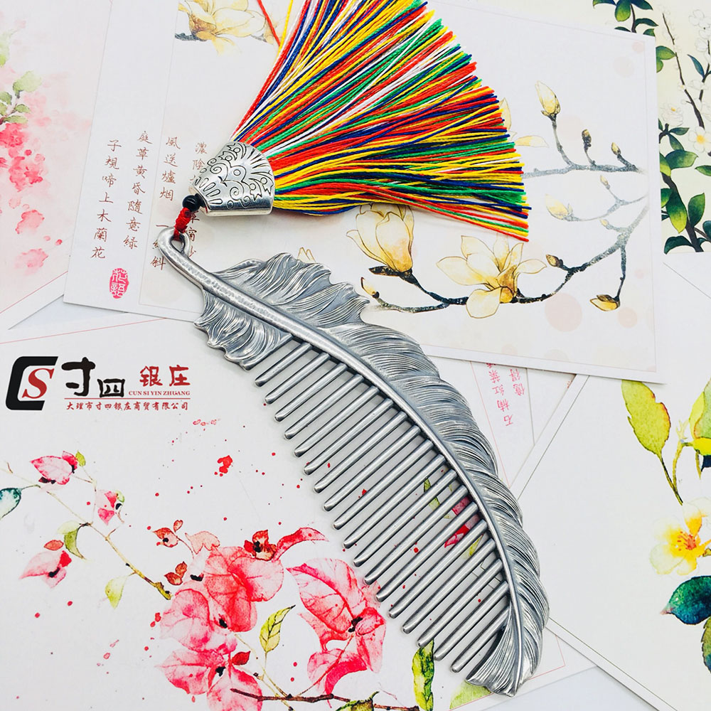 寸四銀莊羽毛銀梳,羽毛肌理非常寫實,搭配精美流蘇,非常精致,