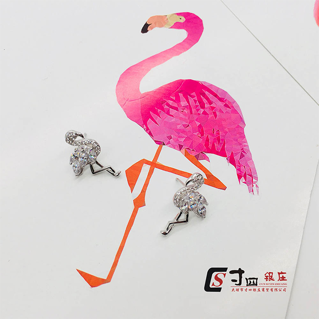 寸四銀莊INS風(fēng)火烈鳥耳釘,精致高雅,女神必備款純銀加鋯石設(shè)計(jì)238/對