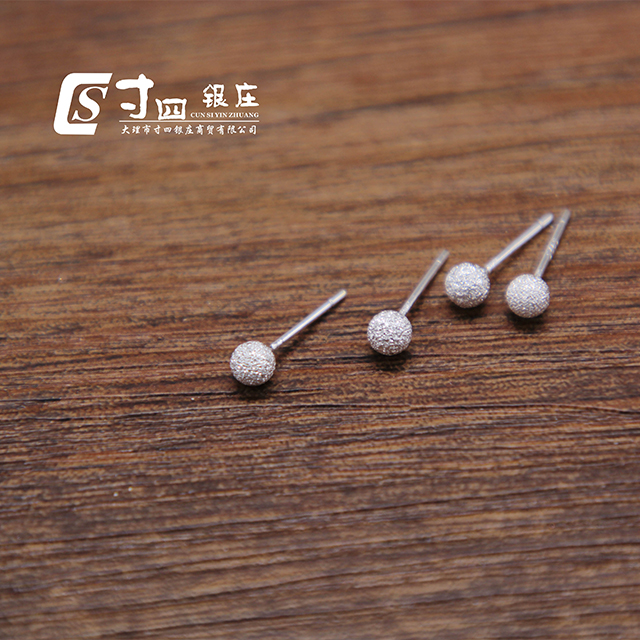寸四銀莊簡約磨砂銀珠耳釘,精致高雅,百搭款純銀磨砂設(shè)計(jì)98/對